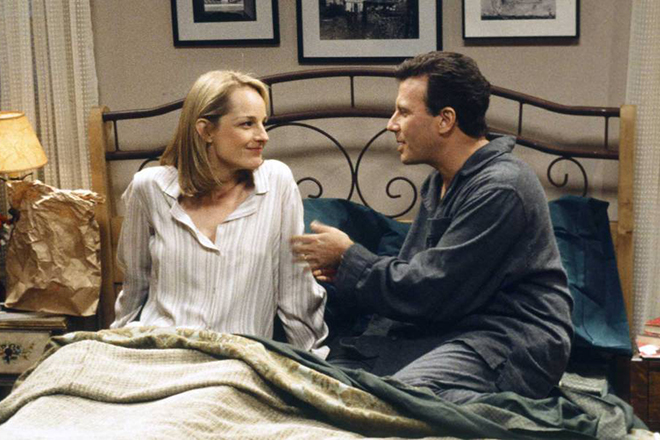 → Хелен Хант и Пол Райзер в фильме «Без ума от тебя»В 1996-ом Хелен снялась в фильме «Смерч», а уже через год получила главную роль в трагикомедии Джеймса Л. Брукса «Лучше не бывает». Кинокартина принесла блондинке ее первый в жизни «Оскар». Примечательно, что изначально роль Мэлвина Юдала предлагалась не Джеку Николсону, а Джону Траволте. В свою очередь, Кэрол Коннели должна была сыграть не Хант, а Холли Хантер.