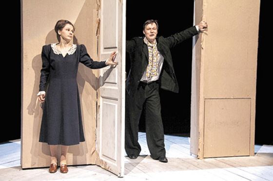 → Игорь Гордин на сцене театра Как позже Игорь отмечал в интервью, именно из-за них, по завершению учебы в 1993-м и работы в течение одного театрального сезона в «Современнике», он выбрал ТЮЗ своим постоянным местом работы, хотя его приглашали сразу несколько престижных коллективов – академический театр Сатиры, «Сатирикон», «Современник». Относясь к этим выдающимся мастерам театральной сцены с большим пиететом, молодой актер заявлял, что был согласен играть у них любых персонажей. В ТЮЗе артист был занят в спектаклях «Романтики» по пьесе Эдмона Ростана, «Казнь декабристов» Камы Гинкаса, «Пена дней» по Борису Виану и другим. Он сыграл множество ярких ролей, раскрыл в полной мере свой многогранный талант и вошел в число ведущих актеров труппы. Среди его работ – Сологуб в работе Гинкаса «Пушкин. Дуэль. Смерть», Боркин в «Иванов и другие», Воула в «Свидетеле обвинения». Самобытно и безупречно артист сыграл Джорджа в постановке «Кто боится Вирджинии Вулф?» по Эдварду Олби, персонажа «Он» в пьесе «Кроткая» по Достоевскому, Ясона в «Медее» по Сенеке, Бродскому и Жану Ануя. Интервью Игоря Гордина Приглашали актера играть и на сцене других театров («Практики», «Мастерской П.Н.Фоменко», Центре драматургии и режиссуры). В частности, в «Театре Наций» Гордин сыграл в спектакле «Метод Гренхольма» в постановке болгарского режиссера Явора Гырдева, созданной по психологической пьесе драматурга из Испании Жорди Гальсерана, принесшей ему всемирную славу. Заслуживает непременного упоминания также спектакль «Калигула» по произведению писателя из Франции, нобелевского лауреата Альбера Камю в постановке признанного «гуру» современного театра, литовца Эймунтаса Някрошюса, где Игорь сыграл Геликона. В 2001-м за воплощение образа Гурова в чеховской «Даме с собачкой» Гордин удостоен премий «Московская премьера», «Чайка». В 2010-м он стал лауреатом отечественной награды «Золотая маска».