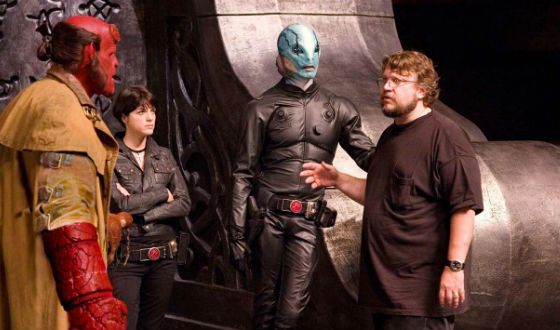 → Гильермо дель Торо на съемках «Хеллбоя» Идею о съемках «Хеллбоя» дель Торо вынашивал очень давно и ради нее отказался от третьей части «Блейда», трезво оценив свои силы. Сам режиссер появился в одной из сцен фильма, спрятавшись в костюм дракона.