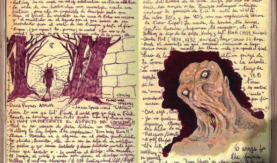→ Фрагмент из скетчбука дель Торо Гильермо верит в призраков и утверждает, что дважды сам встречался с ними. Первый раз – в Мексике, в доме его дяди. Сидя ночью в пустой комнате, он в течение 15-ти минут слышал, как кто-то грустно вздыхает у его уха.