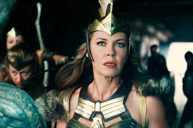 → Конни Нильсен в фильме «Чудо-женщина»Кстати, примечательный факт: Нильсен и Гадот имеют одинаковый рост и вес – 178 сантиметров и 50 килограмм. Актриса ведет активную жизнь – часто совершает продолжительные пешие прогулки на природе и играет с собакой.