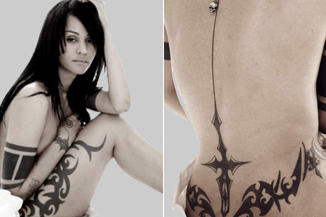 ? Тату Персии УайтСтоит отметить, что тело Персии прославилось большим количеством татуировок, которые та с удовольствием демонстрирует открытыми нарядами. То платье с сеткой, где просматривается тату вдоль спортивного плоского живота, то наряд с голой спиной и с подчеркиванием тату в области поясницы.