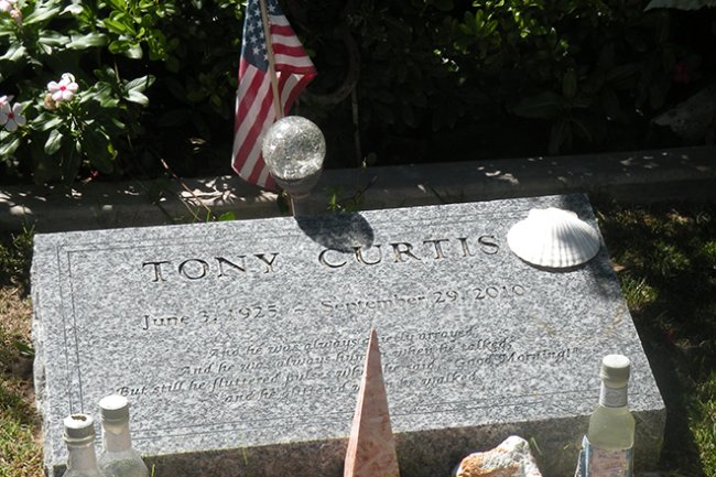 ? Могила Тони КертисаАктера похоронили в Лас-Вегасе. В гроб Кертиса положили любимые шляпу и шарф актера, модные перчатки, книгу Херви Аллена «Энтони несчастный» и iPhone — такова оказалась последняя воля актера.