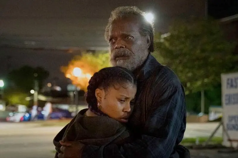 Доминик Фишбэк и Сэмюэл Л. Джексон в сериале «Последние дни Птолемея Грея»