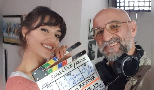 Ханде Эрчел на съемках «Азизе»