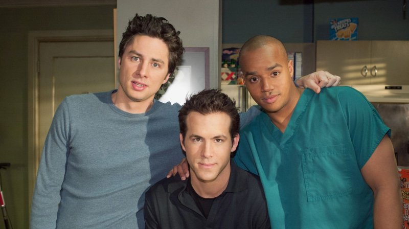 Зак Брафф, Райан Рейнольдс и Дональд Фэйсон на съемках «Клиники»