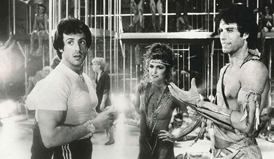 Сильвестр Сталлоне, Финола Хьюз и Джон Траволта на съемках фильма «Остаться в живых»