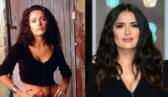 Сальма Хайек в молодости и сейчас