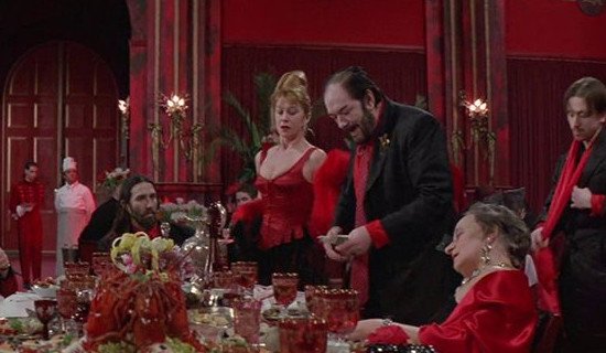 Кадр из картины «Повар, вор, его жена и её любовник» 80-е годы стали одними из самых плодотворных для Хелен Миррен – она продолжила сниматься в авторском кино, не боясь противоречивых сценариев и откровенных сцен. Именно после ролей в «Калигуле» и скандальной драме Питера Гринуэя «Повар, вор, его жена и её любовник», где актриса сыграла с Майклом Гэмбоном и Ришаром Боренже, критики прозвали актрису «секс-символом для интеллектуалов». В это же время она получила свою первую крупную кинонаграду – Серебряную премию за лучшую женскую роль Каннского кинофестиваля за игру в драме Пэта О’Коннора «Дневник террориста» (1984), где она составила блестящий актерский дуэт с Джоном Линчем.