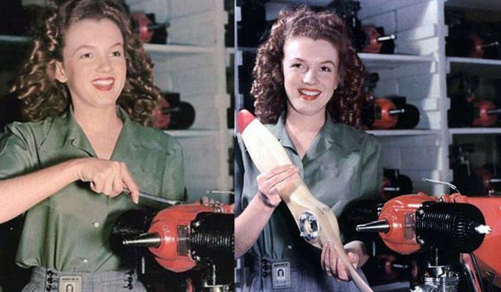 Увы, Анна была тяжело больна, и к своему 15-летию Норме пришлось вернуться в семью Грейс и ее мужа-насильника. На этом ее злоключения закончились: Эрвин игнорировал падчерицу и не вспоминал о том инциденте, Норма сблизилась с его дочерью Бебе, а также начала работать над устранением заикания, что заняло у нее три года. Не от большой любви, а от поселившейся в душе тоски шестнадцатилетняя Норма приняла предложение 20-летнего Джеймса (Джима) Догерти (по разным источникам – то ли рабочего авиазавода, то ли гробовщика), надеясь в семейной жизни обрести так отчаянно недостающую стабильность и заботу. Новоиспеченный муж не дал ей ни того, ни другого и вскоре ушел в море с торговым флотом. Америка воевала, и Норма, так и не окончив школу, устроилась на авиационный завод, в основном потому, что он был рядом с домом.