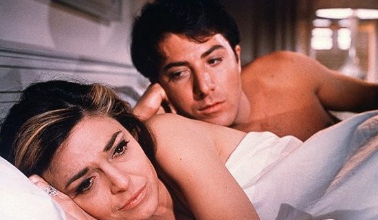 Дастин Хоффман в фильме «Выпускник» Чудаковатый и тонкий, обладающий тем редким обаянием, которое притягивает внимание женщин любого возраста, Дастин выглядел на экране необыкновенно сексуально. Роль зрелой дамы, которая соблазнила сына своих друзей Бена, сыграла Энн Бэнкрофт, а роль её дочери, в которую влюбился Бен – Кэтрин Росс. В эпоху начинающейся сексуальной революции лента «Выпускник» произвела должный эффект, а на Дастина Хоффмана обрушилась слава. За эту роль актёр получил «Золотой Глобус», британскую BAFTA и был номинирован на главный приз киноакадемии.