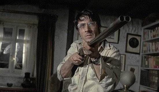 Дастин Хоффман в фильме «Маленький большой человек» С 1971 по 1978 год Дастин Хоффман, уже заслуживший особое место среди кинозвёзд не внешностью, а мастерством, сыграл в картинах, каждая из которых вошла в золотой фонд киноискусства. В триллере «Соломенные псы» актёр исполнил роль интеллигентного парня-математика, вынужденного защищать свою жизнь с оружием в руках. Однако убив одного из местечковых хулиганов, раззадоренных слишком короткой юбкой его девушки, Дэвид уже не может остановиться и превращается в зверя.