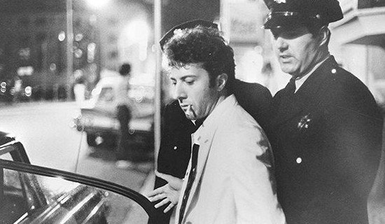 Дастин Хоффман с Мией Фэрроу в фильме «Джон и Мэри» В социальной драме «Полуночный ковбой» Дастин перевоплотился в бездомного проныру Рико, страдающего туберкулёзом. Решивший стать менеджером наивного до крайности ковбоя Джо, которого играл Джон Войт, Рико подбивает его предоставлять сексуальные услуги за деньги. Тема лишних людей, оказавшихся на самом дне жизни, поднятая в картине была высоко оценена критиками, а зрители были поражены перевоплощением Дастина, который реалистично кашлял и хромал, изображая калеку. За роль Рико Дастин снова был номинирован на Оскар. Следующим успехом Дастина стала его роль в драматическом вестерне «Маленький большой человек» по роману Томаса Бергера, рассказывающем о взаимоотношениях белых и индейцев, об истории жизни и всех трудностях, которые пришлось преодолеть Джеку Крэббу. Повествование ведётся от лица главного героя, 120-летнего старика, в которого пришлось перевоплотиться Дастину. Партнёрами актёра, в очередной раз удивившего зрителей своим уникальным даром перевоплощения в этом фильме были Фэй Данауэй, Ричард Маллиган и настоящий индейский вождь Дэн Джорж.