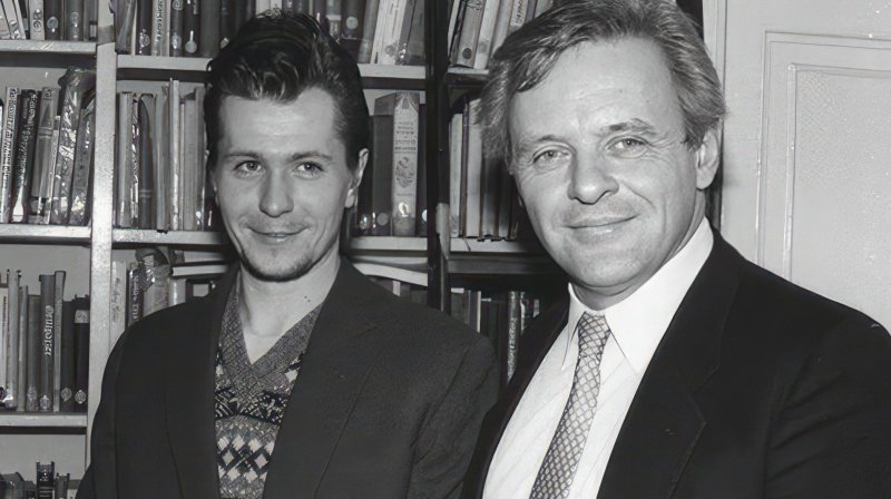 Молодой Гари Олдман и Энтони Хопкинс В начале 80-х Гэри был подающим надежды телевизионным актером. Успеха на большом экране молодой актер добился в 1986 году после того, как исполнил главную роль в известной киноленте «Сид и Нэнси».