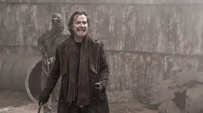 Гари Олдман в фильме «Книга Илая» В ремейке фильма о «Робокопе», вышедшем в 2014 году, Гэри сыграл доктора, создавшего робота-полицейского. В этом же году актёр снялся в роли выжившего представителя человеческой расы в фантастическом боевике «Планета обезьян: Революция». Гари Олдман в фильме «Темные времена» (трейлер) В феврале 2018 года Гэри Олдман получил свой первый «Оскар». Статуэтку «За лучшую мужскую роль» ему присудили за роль Уинстона Черчилля в военной драме «Темные времена» Джо Райта. Гари Олдман на церемонии вручения премии «Оскар» 2018