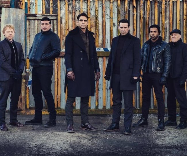 Руперт Гринт, Тамер Хассан, Люк Паскуалино, Дугрей Скотт, Люсьен Лавискаунт, и Иэн Гелдер в сериале «Большой куш» / кадр из сериала
