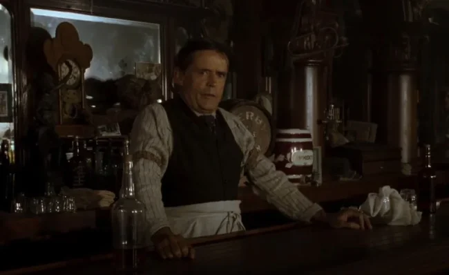 Мэтт Кларк в фильме «Назад в будущее 3» / кадр из фильмаС поддержки друга Мэтт получил роль во франшизе «Назад в будущее». Ллойд уговорил съемочную группу на эксперимент. Он сказал, что знает человека, который бы идеально сыграл бармена салуна в стиле Дикого Запада, но наотрез отказался показывать его портфолио и приводить на прослушивание. Он убедил их сразу пустить незнакомца в кадр. Звезда вестернов настолько гармонично вписалась в атмосферу 1885 года, что сразу получила роль.