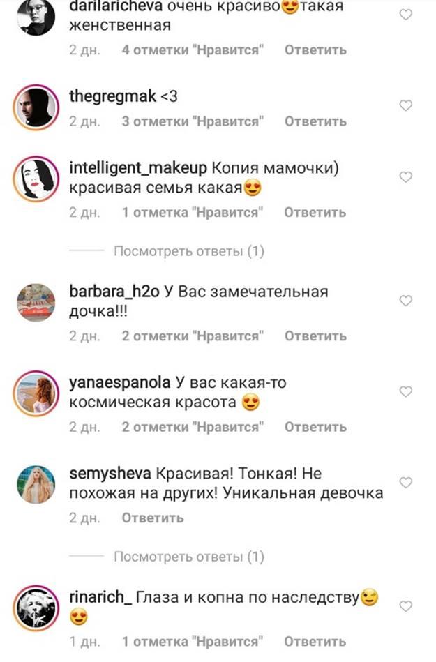 «Копия мамочки, красивая семья какая», «У вас замечательная дочка», «Красивая, тонкая! Не похожа на других! Уникальная девочка», «У вас какая-то космическая красота!!», «Глаза и копна по наследству», «Ульяна, красавица с невероятным взглядом», — такие комментарии появились под свежей публикацией в микроблоге актрисы.