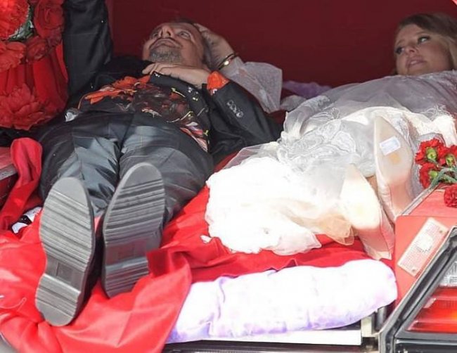Ксения Собчак появилась на собственной свадьбе с ценником на туфлях. Очевидно это стало после того, как в Сети появились снимки с торжества телеведущей и режиссера. На опубликованном кадре видно, как супруги лежат в специально оборудованном для памятного дня катафалке, а на подошве лодочек красуется белая наклейка с ценой.