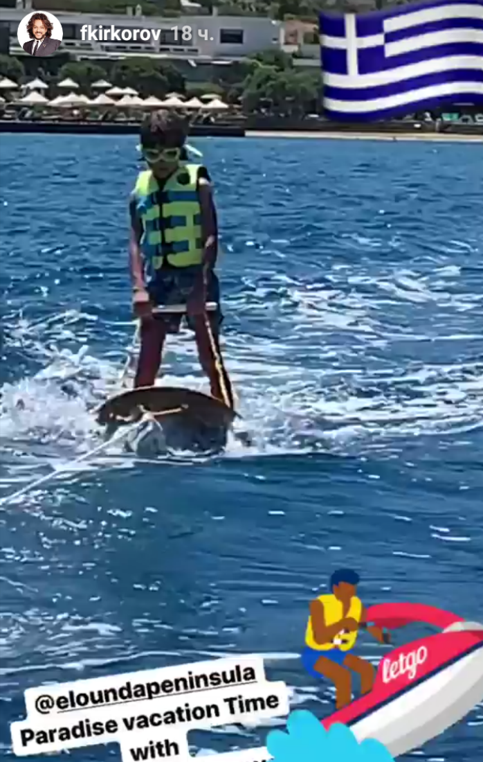 На Крите Филипп Киркоров также попытался приобщить детей к новым видам спорта. Они научились мастерски кататься на водной доске и стали брать уроки гольфа. Первая игра закончилась вничью: 13 х 13.