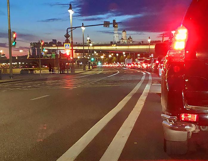 Стояло Садовое кольцо и Тверская улица в сторону центра, Большая Дмитровская, не двигались Большая и Малая Лубянка по направлению от центра, полностью замерли Новый Арбат и Никитский Бульвар.
