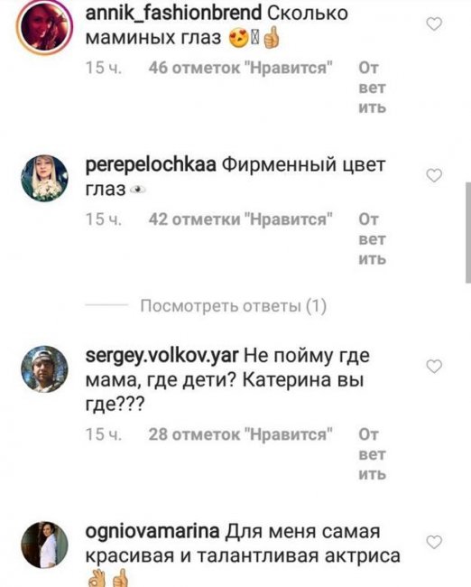 К слову, рассматривая новые снимки артистки, одна из подписчиц Екатерины Климовой под ником @katepanchenko подметила, что у старших детей актрисы глаза такие же, как и у их мамы.