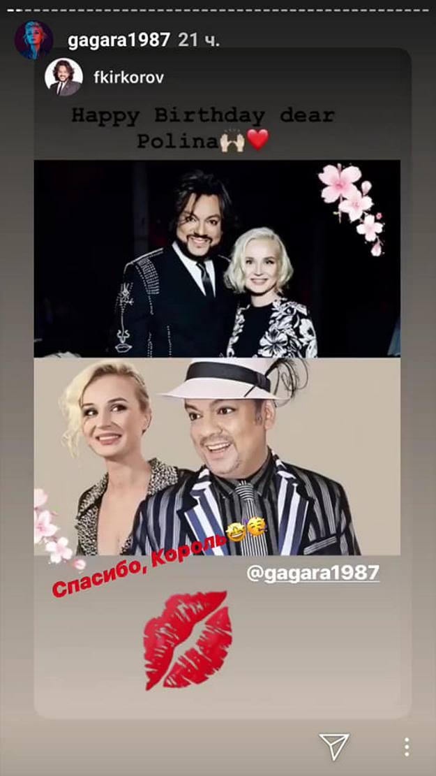 27 марта певица Полина Гагарина отметила свой 32-й день рождения. В своем Stories именинница опубликовала фотокарточки с пожеланиями от коллег и друзей. Не забыли о празднике исполнительницы поп-король Филипп Киркоров, певец Сергей Лазарев, украинская исполнительница Ани Лорак, телеведущая Регина Тодоренко и продюсер Яна Рудковская.