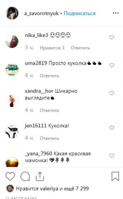 «Как расцвели от материнства, сама женственность», «Просто куколка», «Шикарно выглядите», «Какая красивая мамочка!», «Настя! Вы — великолепны! Всегда оставайтесь такой яркой и очаровательной», — такие комментарии появились под свежими снимками Анастасии Заворотнюк на ее личной страничке.