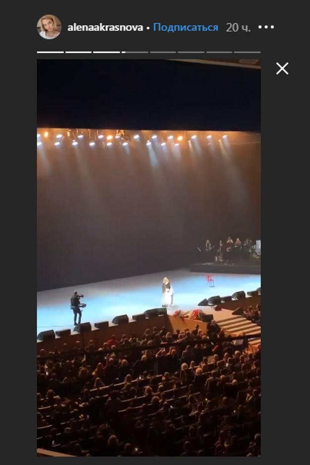70-летняя Алла Пугачева выступила с юбилейным концертом в Кремлевском дворце. Среди приглашенных гостей в зале также находилась и невестка Примадонны — модель Алена Краснова. Избранница старшего внука Аллы Борисовны специально для своих подписчиков вела трансляцию в Stories своего аккаунта в Instagram, выкладывая видеоролики и кадры с мероприятия.