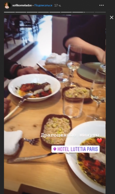 Валерий Меладзе пригласил своих дочек, а также бывшую жену Ирину в дорогой ресторан, расположенный в отеле Lutetia. Об ужине с родителями рассказала Софико в разделе Stories. Девушка сняла на видео воссоединившуюся семью, отметив трогательность момента.