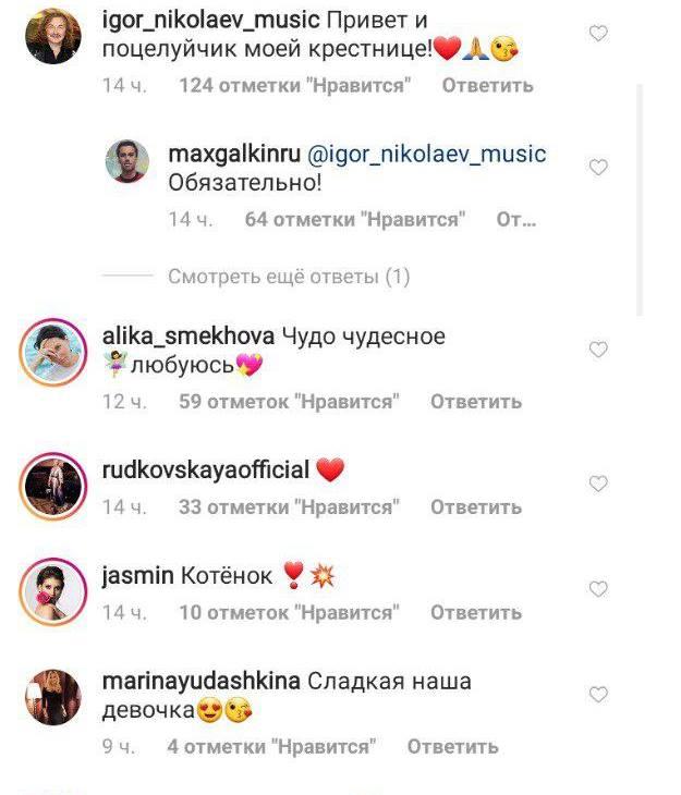 Игорь Николаев не оставил без внимания свежий снимок своей крестной дочери (Фото: Instagram.com/maxgalkinru)