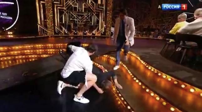 Алибасов упал с кресла. фото: кадр из передачи «Привет, Андрей!»