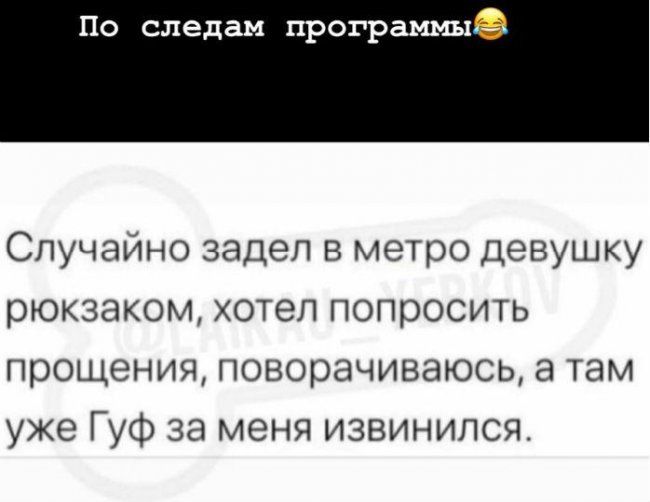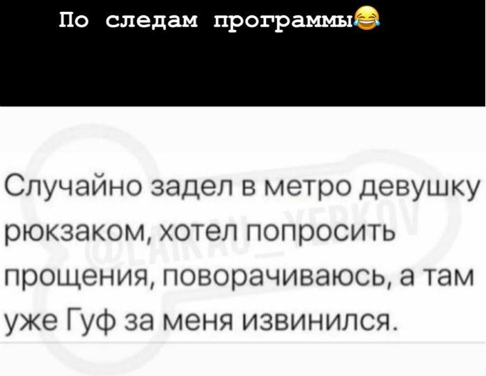 Ксения Собчак посмеялась над бывшим героем своей YouTube-программы рэпером Гуфом. В stories Instagram светская львица опубликовала интернет-шутку со следующим текстом: «Случайно задел в метро девушку, хотел попросить прощения, а там уже Гуф за меня извинился». Ксения дополнила текст словами: «По следам программы». И поставила смеющийся до слез смайл.