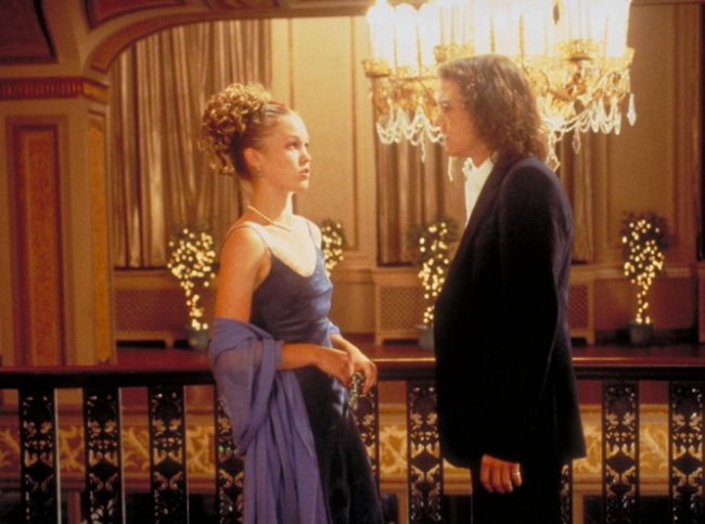 Культовая комедия конца 90-х, в которой сыграли Хит Леджер и Джулия Стайлз. Сюжет частично основан на произведении Шекспира «Укрощение строптивой», а некоторые названия и имена героев отсылают к «Ромео и Джульетте». По сюжету строгий отец воспитывает целомудренную и избегающую вечеринок Кэт и постоянно пытающуюся выбиться из-под родительской опеки Бьянку. Он разрешает последней пойти на вечеринку, только если на нее пойдет Кэт. Старшая серьезная сестра в этот момент путем хитрых интриг за спиной случайно знакомится с местным хулиганом Патриком Вероной, который переворачивает ее взгляд на мир. Кстати, Хит Леджер признавался, что снимался в этой картине ради денег и стыдился этой роли, так как всегда хотел играть только в серьезном кино.