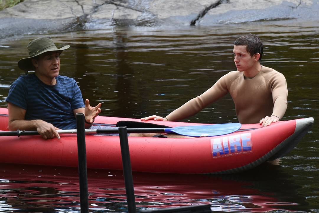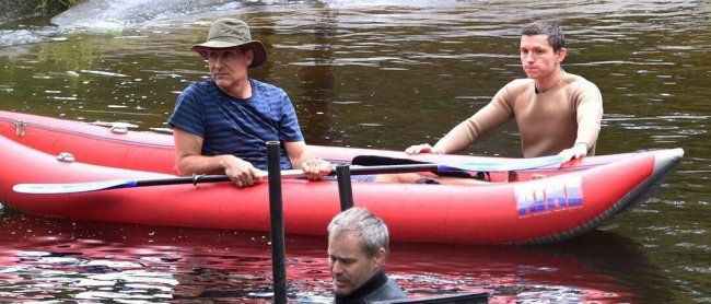 Том Холлэнд на фото со съемочной площадки фэнтези-ленты «Поступь хаоса» по мотивам трилогии Патрика Несса. Режиссерское кресло проекта занимает Даг Лайман («Грань будущего»), а компанию Холлэнду составят Дейзи Ридли и Мадс Миккельсен.