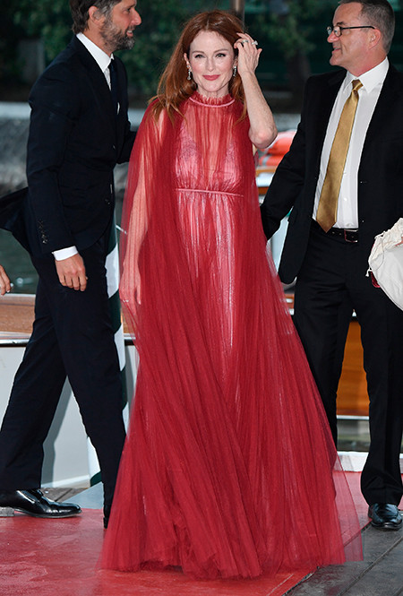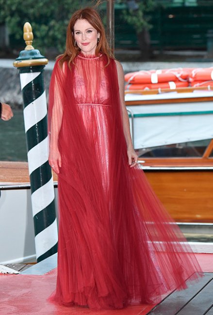 Еще одна актриса, в возраст которой трудно поверить: в декабре ей исполнится 57 лет. Джулианна Мур была великолепна в замысловатом двухслойном платье Valentino из осенней коллекции 2017 года. Чехол платья состоял из кружева с цветочным орнаментом, а верх – из красной органзы. Ветер, который в тот вечер бушевал над красной ковровой дорожкой, только добавил эффектности образу.