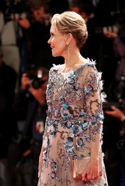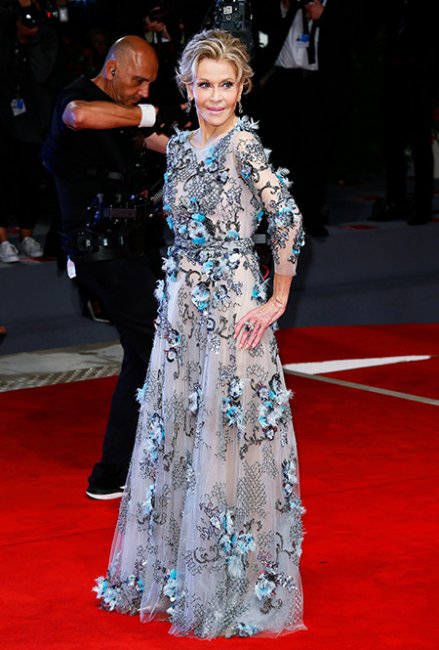 Трудно поверить, глядя на эту женщину, что в декабре она будет отмечать свое 80-летие. Джейн Фонда – живое доказательство того, что источник эликсира женской молодости находится внутри нас. Ее появление в третий день Венецианского фестиваля в платье Marchesa стало, без преувеличения, одним из самых ярких фэшн-событий. 79-летняя звезда показала пример всем девушкам, как носить «голые» платья так, чтобы не выглядеть вульгарной или просто неуместной.