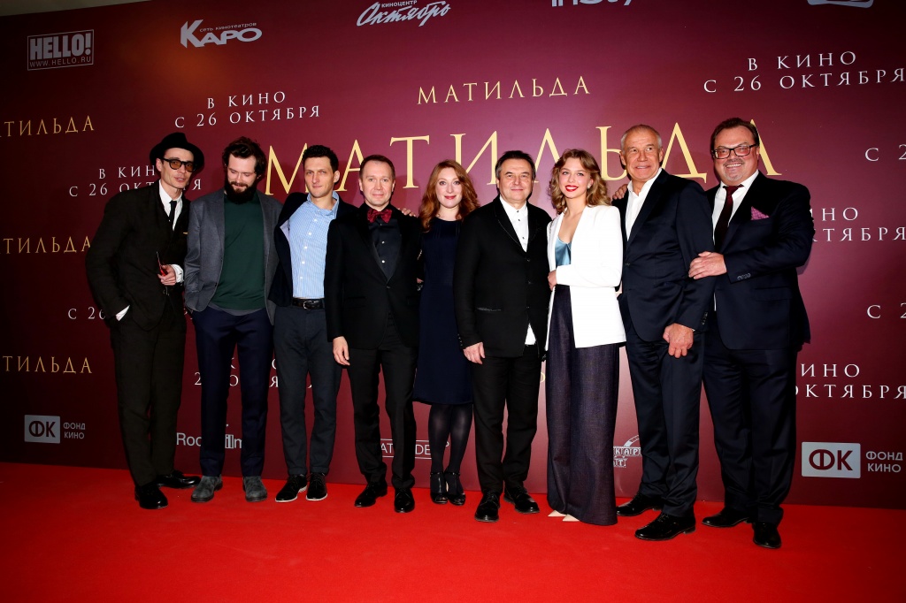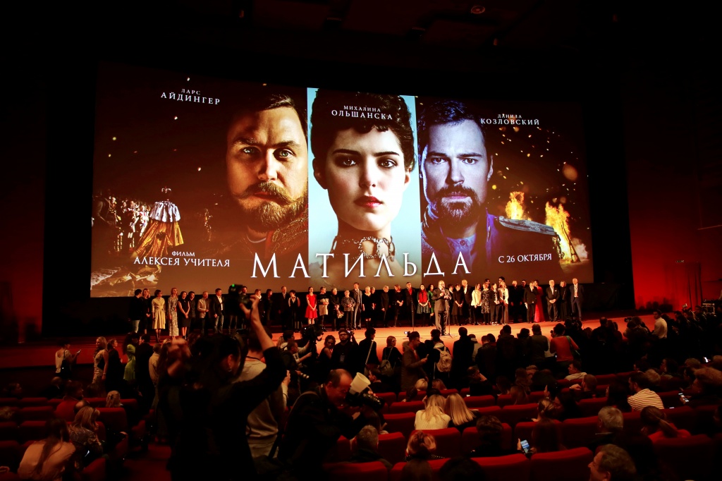 24 октября 2017 года в столичном кинотеатре «Октябрь» состоялась премьера фильма Алексея Учителя «Матильда», дорога которого к прокату была тернистой (дистрибьютор – компания Каропрокат). Накануне днем прошел пресс-показ картины и пресс-конференция с участием Алексея Учителя, Сергея Гармаша, Ингеборги Дапкунайте, Григория Добрыгина и Алексея Рязанцева. Несмотря на то, что все причастные к созданию фильма надеялись поговорить о творческом процессе, без обсуждения общественного резонанса не обошлось. Накануне премьера «Матильды» состоялась в Санкт-Петербурге в Мариинском театре. По словам Учителя, она прошла успешно, хотя и не без небольших инцидентов. «Мне было очень важно провести показ в Мариинском театре. Во-первых, на его сцене танцевала героиня фильма, во-вторых, здесь снимались многие сцены «Матильды», и, в-третьих, записывалась замечательная музыка композитора Марко Бельтрами. В конце показа всех ждал сюрприз — под титры из оркестровой ямы поднялся Мариинский оркестр. Зал был переполнен, и, как я сказал на сцене, это победа не фильма, и не моя, а победа здравомыслящих людей», — рассказал прессе режиссер. Ингеборга Дапкунайте выразила восхищение «достоинством, выдержкой и силой Алексея Ефимовича». «Хотелось бы, чтобы фильм воспринимали по его художественным особенностям, а не скандалу», — сказала актриса. Она сыграла, пожалуй, одну из самых впечатляющих ролей в «Матильде», представ в образе строгой и справедливой императрицы Марии Фёдоровны, супруги императора Александра III. Сергей Гармаш подчеркнул, что обсуждение протеста только питает скандал, но ответил на вопрос о личном отношении к ситуации: «Меня это очень угнетает. Я принципиально никогда не говорю о политике, но сейчас хотелось бы, чтобы на православный активизм, который орудует в том числе коктейлями Молотова, была адекватная реакция власти». К словам Сергея Гармаша присоединился Григорий Добрыгин. Он рассказал, что обсуждал со своими верующими родителями сложившуюся ситуацию — они заметили, что Библия не скрывает никаких поступков людей веры: «Почему мы так стыдливо прячем реальные факты?». Актер также добавил, что пробовался почти на все мужские роли в «Матильде», кроме одной — той, на которую был утвержден. Глава компании «Каро Премьер» Алексей Рязанцев признался, что поначалу шумиха вокруг «Матильды» даже радовала дистрибьютора, как естественная реклама, но «чем дальше, тем серьезнее оборот принимает дело». Он поблагодарил кинотеатры, которые дали согласие на показ и даже объединенную сеть Александра Мамута, отказ которой помог побудить внимание правоохранительных органов к проблеме. 26 октября картина Учителя выходит в широкий прокат количеством свыше 2000 копий. Рязанцев отметил, что активно идут предпродажи билетов, опережая на этом этапе показатели проектов «Гоголь: Начало» и «Салют 7». Также Рязанцев призвал зрителей не беспокоиться о безопасности — по всей России в кинотеатрах усилена охрана порядка, работают органы МВД. Алексей Учитель отметил, что негативная реакция на фильм, по его мнению, сильно преувеличена: «Поверьте, 100 тысяч подписей против «Матильды» точно не существует. Несколько тысяч, действительно, набралось, но в соотношении с населением страны, это ничего не стоит. Я знал, что дискуссии о картине развернутся, но думал, что произ