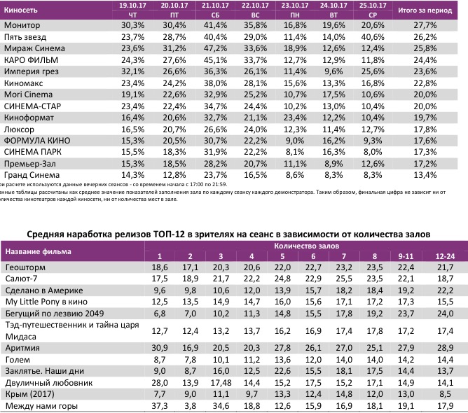 Лучшие показатели заполняемости по фильму «Геошторм» у киносети «Монитор».