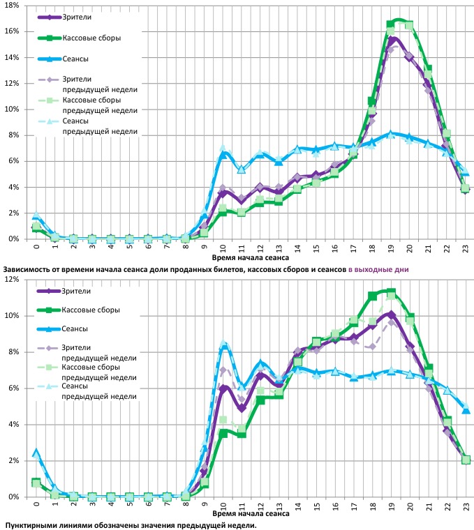 Заполняемость залов в выходные дни оказалась на уровне прошлой недели.