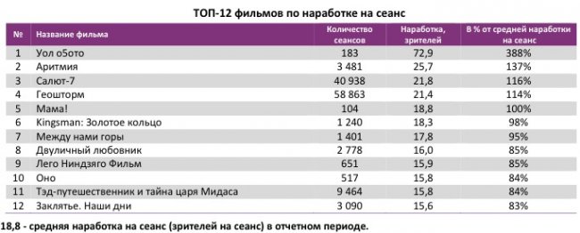 «Салют-7» показывал лучшую наработку на сеанс в кинотеатрах с 2-7 залами.