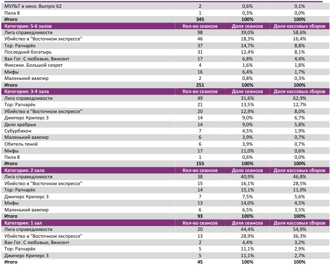 «Лига справедливости» в семи лучших однозальных кинотеатрах страны собирала 40-63% от общего бокс-офиса.
