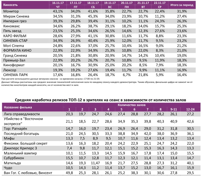 Лучшей киносетью по заполняемости на «Лиге справедливости» стал «Монитор».
