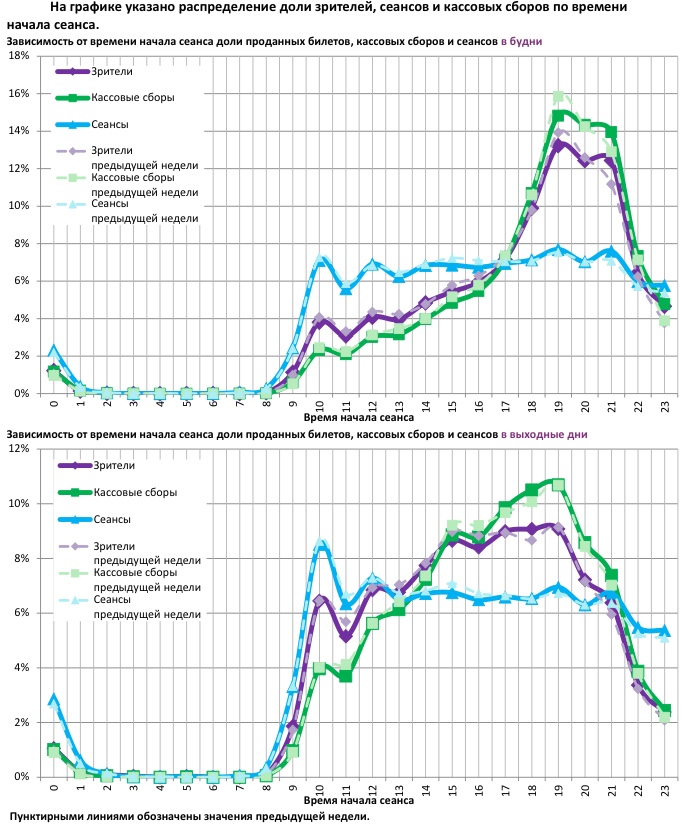 Статистика Фонда кино отражает информацию об основных результатах проката, лидерах недели по сборам и наработке на сеанс, показателях работы кинотеатров, эффективности репертуарного планирования, а также о соотношении долей по сборам, зрителям и сеансам в рамках данного периода.