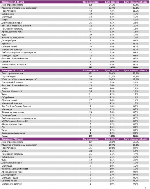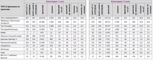 В однозальных кинотеатрах средняя цена билета составила 208 рублей, тогда как в кинотеатрах с 9-11 залами - 287 рублей.