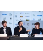 Неделя российского кино в Великобритании, пресс-конференция, Филип Перкон, Федор Бондарчук, Мария Александрова