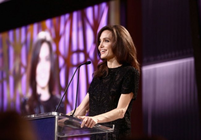 Многие обрадовались тому, что Анджелина наконец перестала все время носить черный, и начала выбирать платья и костюмы ярких цветов. Однако о своем любимом цвете Джоли все же не забывает. Так, на днях, актриса посетила завтрак издания Hollywood Reporter, на котором выступила с эмоциональной речью о правах женщин. В этот день на Анджелине был стильный кружевной костюм черного цвета, и выглядела она в нем великолепно.