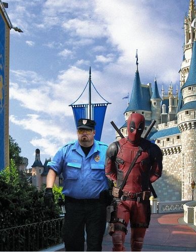 Райан Рейнольдс уже пошутил по этому поводу в Твиттере, выложив фото, на котором упитанный суровый охранник выводит Дэдпула прочь из Диснейленда.