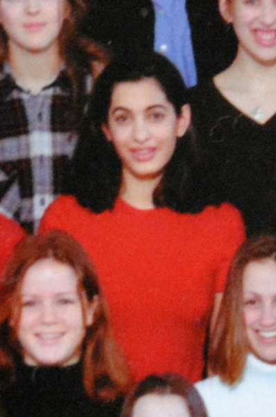 Групповая фотография была сделана в 1996 году в честь окончания Амаль и ее одноклассниц средней школы. Тогда будущему юристу и жене Джорджа Клуни было всего 17 лет. Скромно одетая ученица школы для девочек Dr Challoner's High позировала среди одноклассниц в красном джемпере (красный джемпер выделял отличников. — Прим. ред.) с распущенными длинными волосами и милой улыбкой на лице.