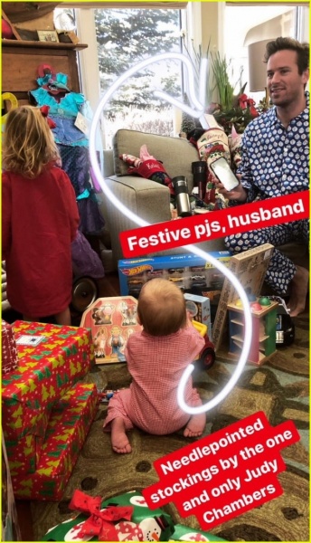 Отметив Рождество и как следует проспавшись после веселья, звезды начинают возвращаться в социальные сети – и, к вящей радости поклонников, делиться фото отчетами с праздника. Вот и Арми Хаммер, которого в ближайшие несколько недель мы будем видеть на всевозможных красных дорожках сезона кинонаград, поделился трогательными фото с Рождества, которое отпраздновал с супругой и двумя маленькими детьми. Арми и его жена, Элизабет Чемберс, засняли, наверное, один из самых трогательных процессов в принципе – то, как их маленькие дети, 3-летняя Харпер и годовалый Форд, распаковывают рождественские подарки: